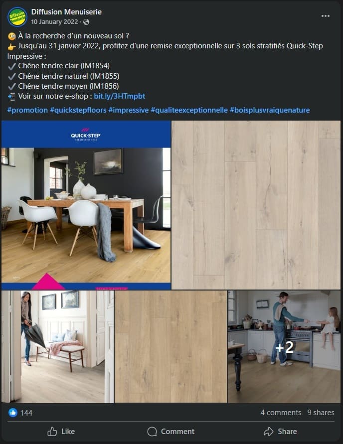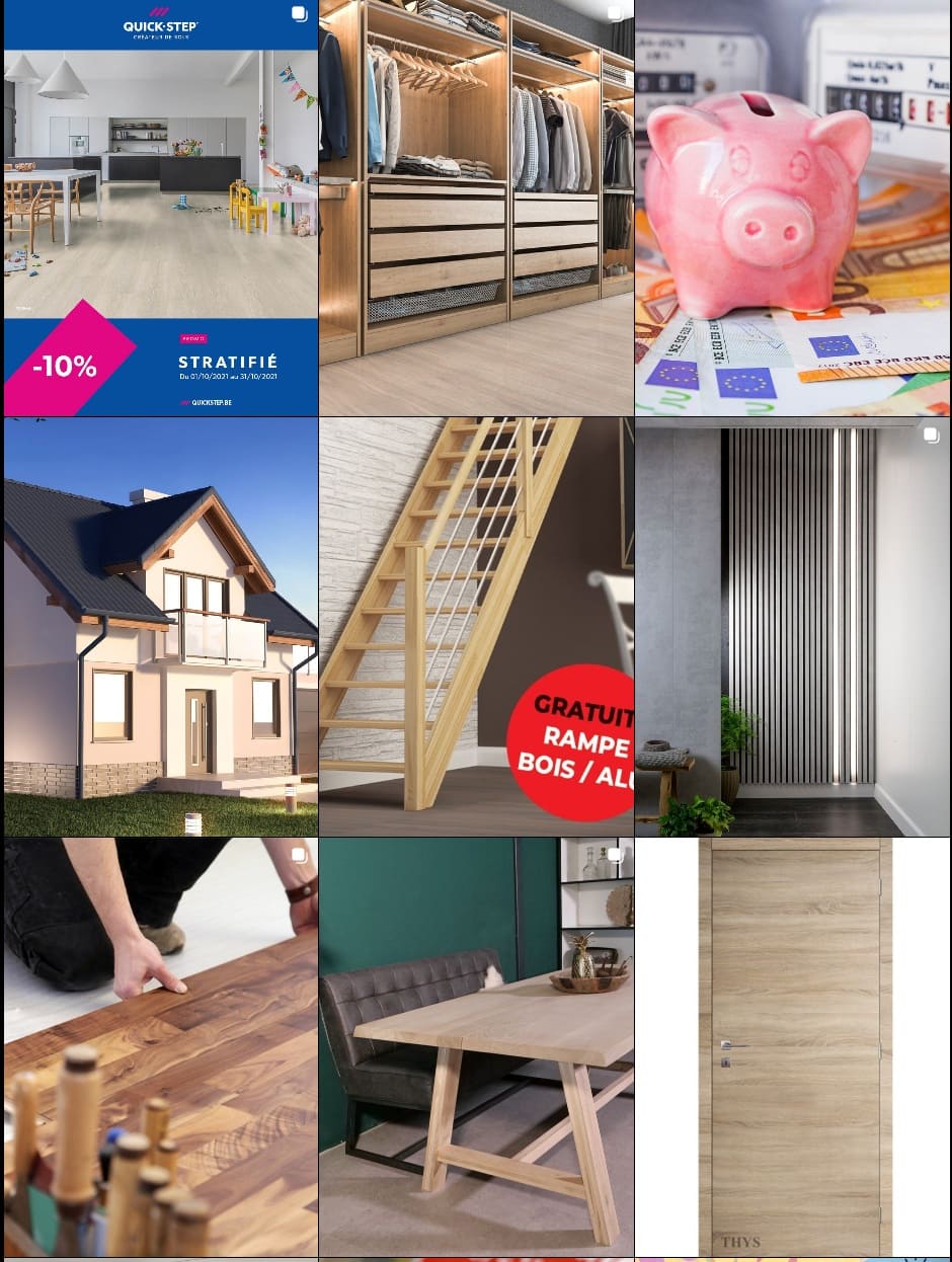 Stratégie social media adaptée au secteur B2B menuiserie sur LinkedIn, et au secteur B2C sur Instagram et Facebook.